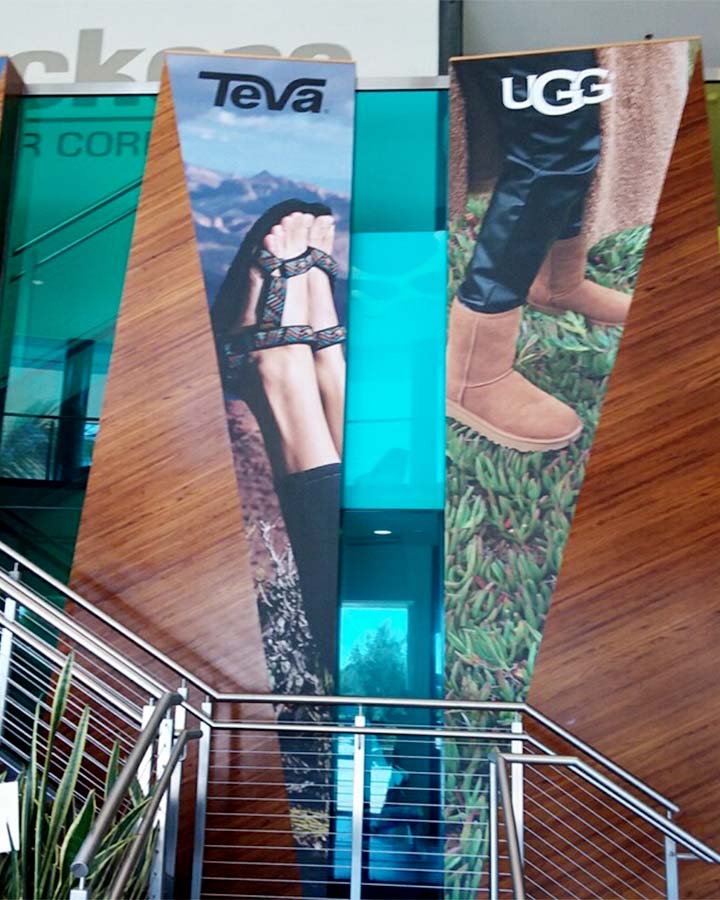 - Wall Murals - Big impact wall murals. Think of this as wallpaper. There's really no limit in size. Can be printed on either polyester fabric, which has a matte finish or on adhesive vinyl for more high traffic areas. Wall murals are great for residential applications too. Check out this blog post for a wall mural we did in the dining room of one of our customers.